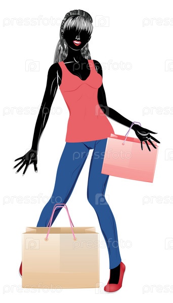 Силуэт девушки в спортивной одежде с покупками
