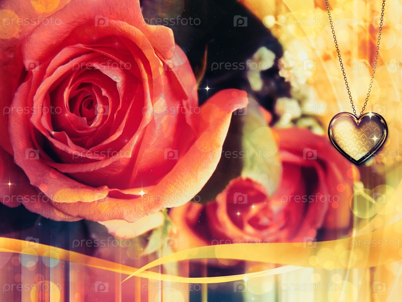 Открытка с розой и подвеской