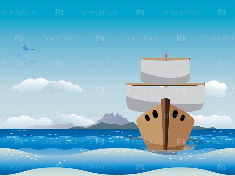 Мультивликационный корабль в море