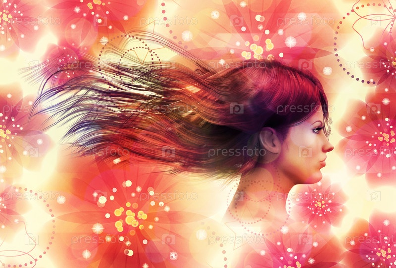 Девушка на цветочном фоне