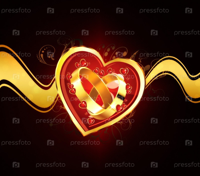 Открыка с обручальными кольцами в сердце