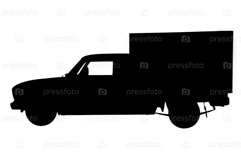 Контур маленького грузовика на белом фоне. Вид сбоку