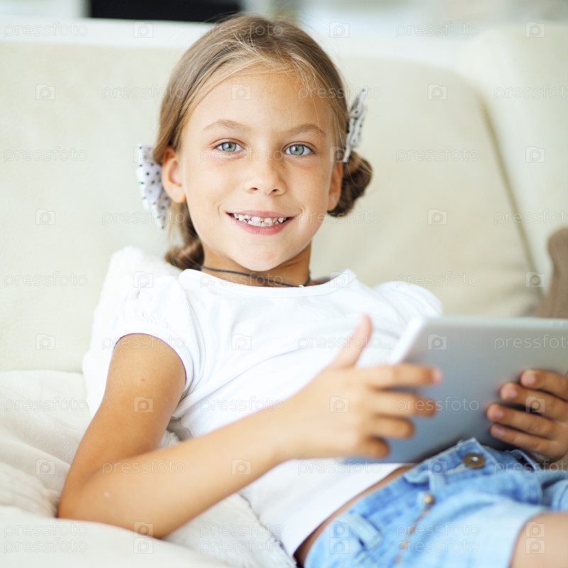 Ребенок, играющий на планшетном компьютере