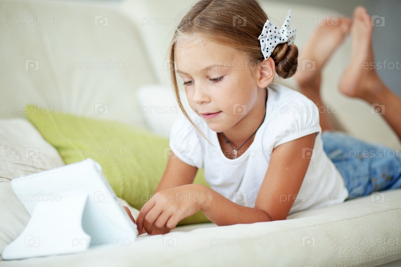 Ребенок, играющий на планшетном компьютере