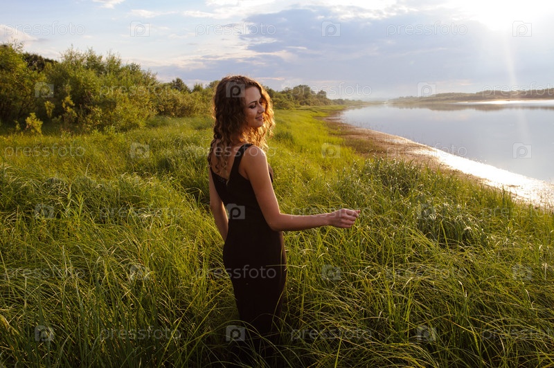 Красивая девушка идет в высокой траве
