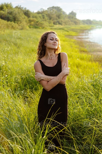 Красивая девушка идет в высокой траве