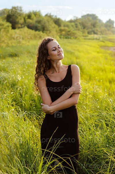Красивая девушка идет в высокой траве