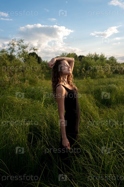Красивая девушка идет в высокой траве