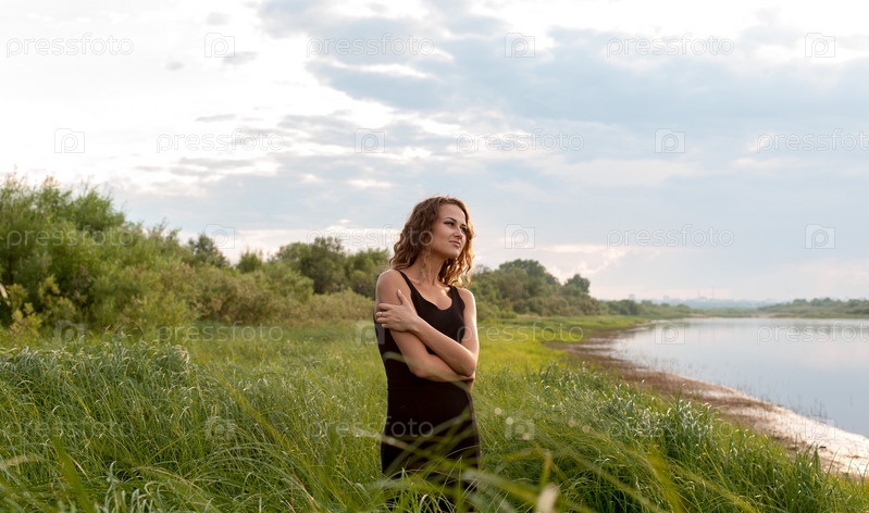 Красивая девушка идет в высокой траве