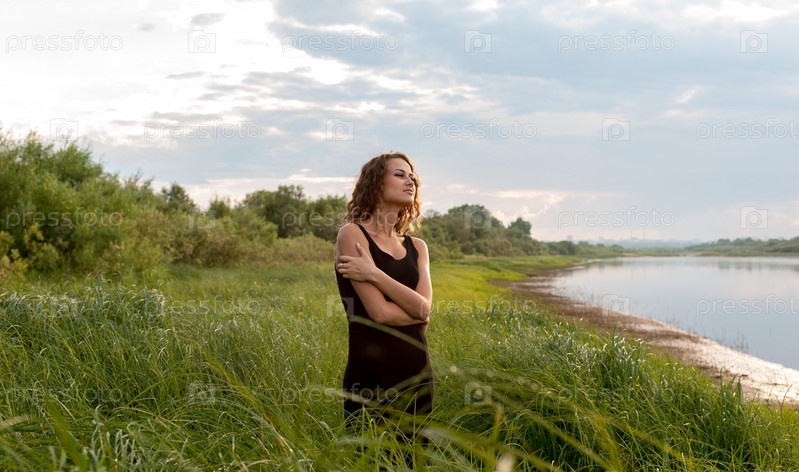 Красивая девушка идет в высокой траве
