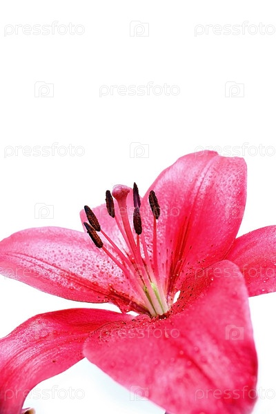 Красная лилия крупным планом на белом фоне