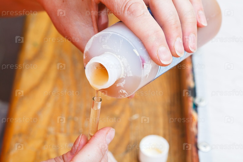Разбавление закрепителя водой в стеклянной пробирке