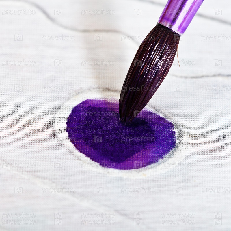 Рисование фиолетового орнамента на шелковом полотне