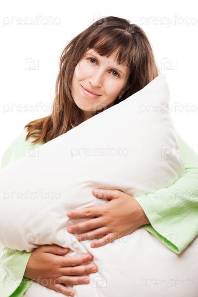 Улыбающаяся женщина держит подушку