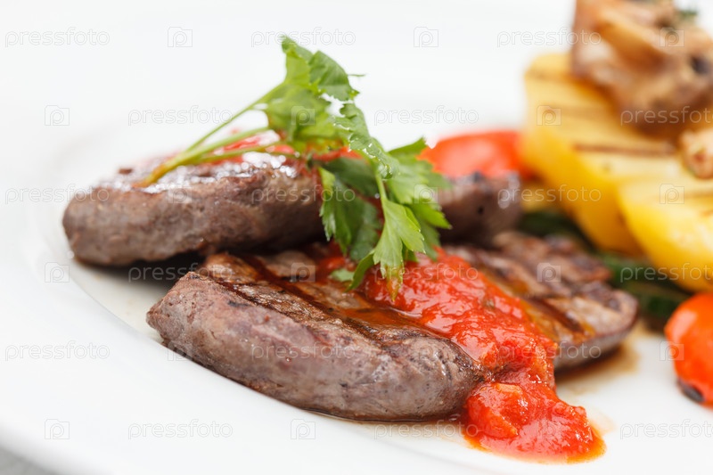 Стейк с запеченными овощами