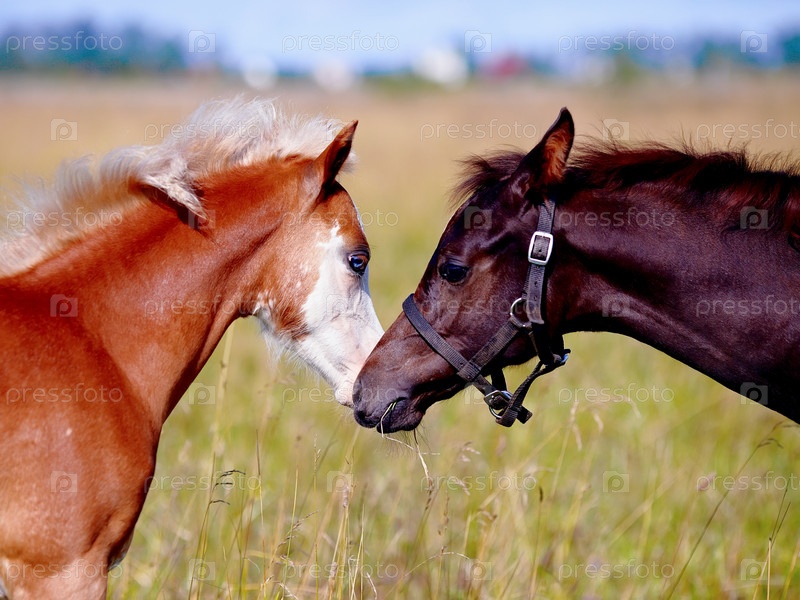 Портрет двух жеребят на лугу