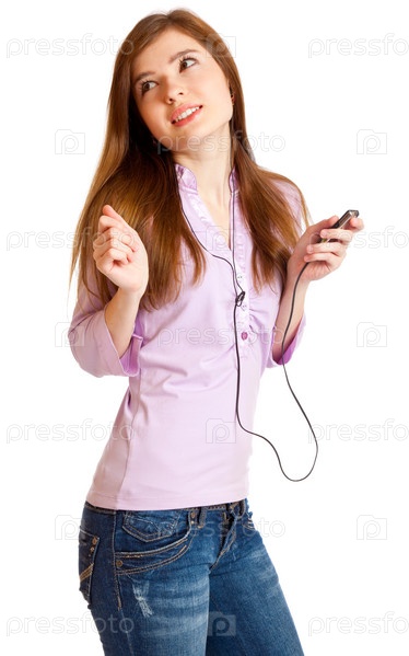 Молодая девушка слушает музыку на MP3-плеере