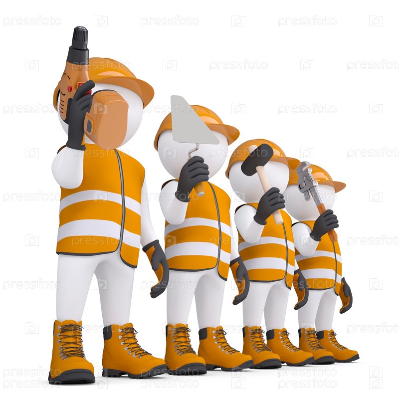 Четыре 3D белых человечка в инструментальных костюмах