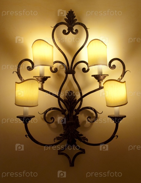 Горящий витиеватый светильник, висящий на стене