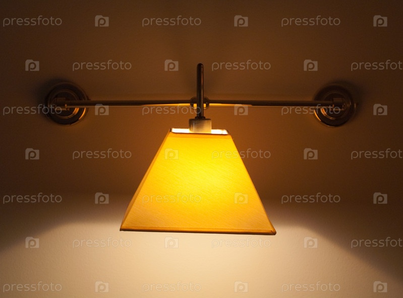 Горящий одноламповый светильник на стене