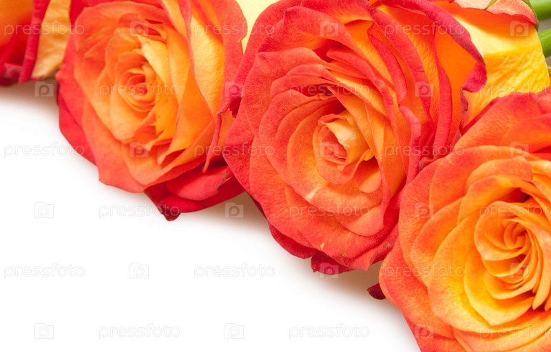 Оранжевые розы на белом фоне