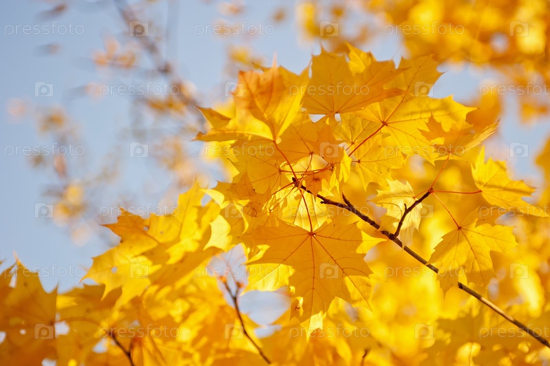 Желтые кленовые листья на фоне неба