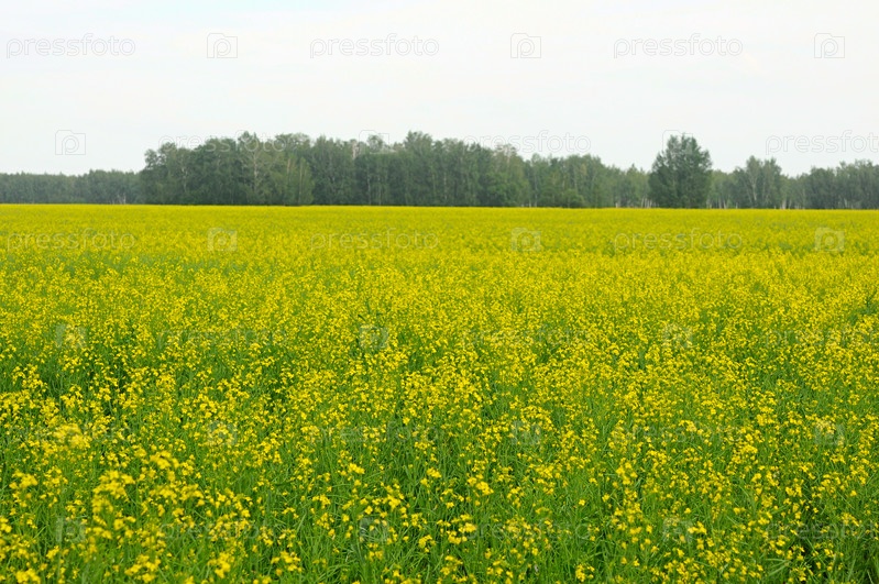 Сельский пейзаж. Поле желтого рапса в Казахстане