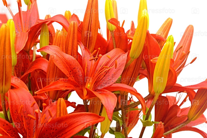 Букет красных лилий, изолированный