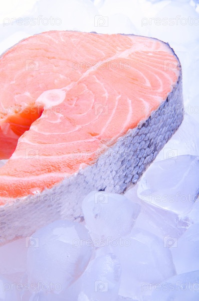 Кусок красной рыбы, лосося, на льду