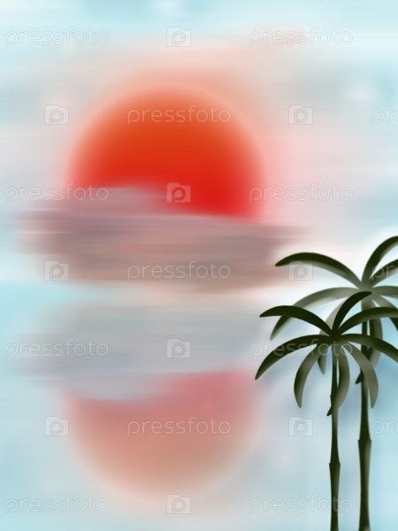 Рисунок, на котором изображены пальмы и закат