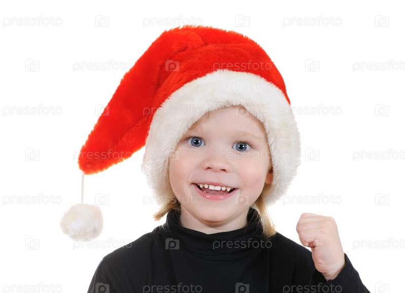 Ребенок в шляпе Санта-Клаус изолирован на белом фоне