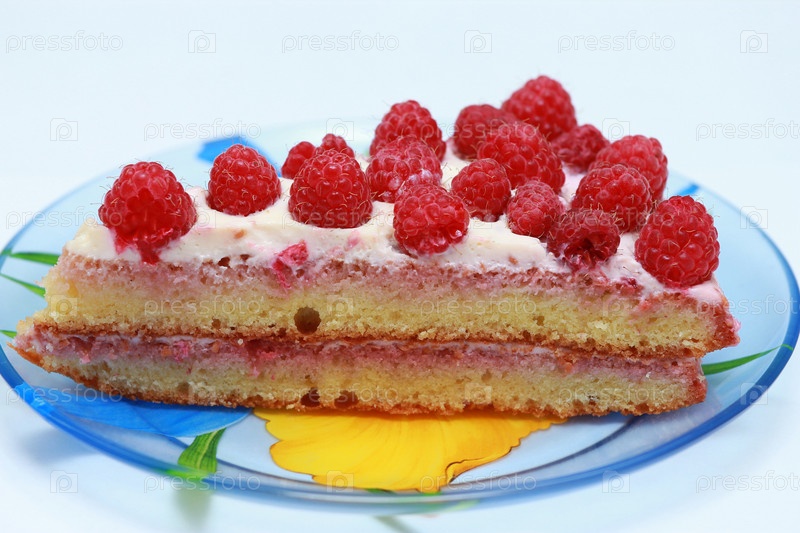 Кусок торта с малиной