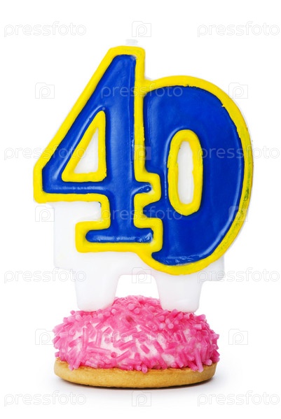 Свеча в виде цифр для именинного торта на пирожном, изолированная на белом фоне