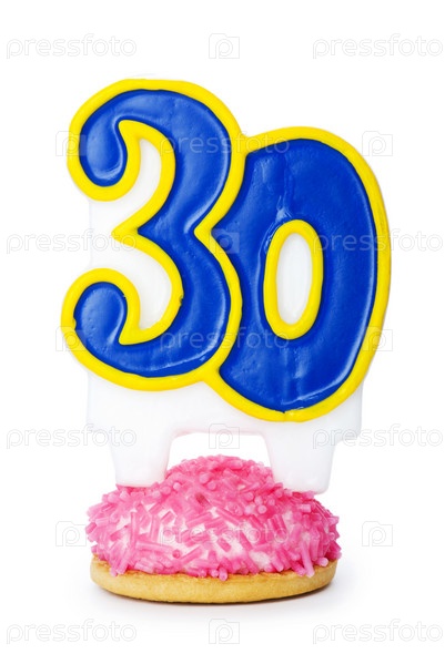 Свеча в виде цифр для именинного торта на пирожном, изолированная на белом фоне