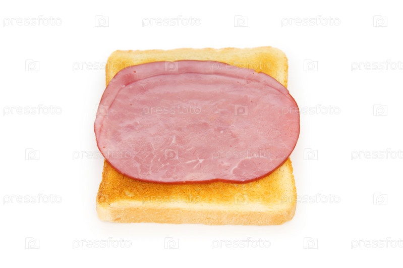 Тост с ветчиной, изолированный на белом фоне