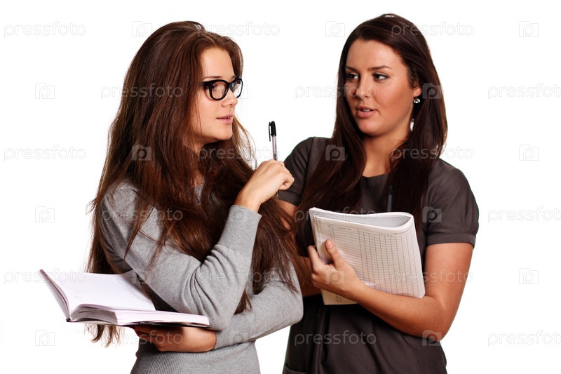 Две девушки на белом фоне с тетрадями