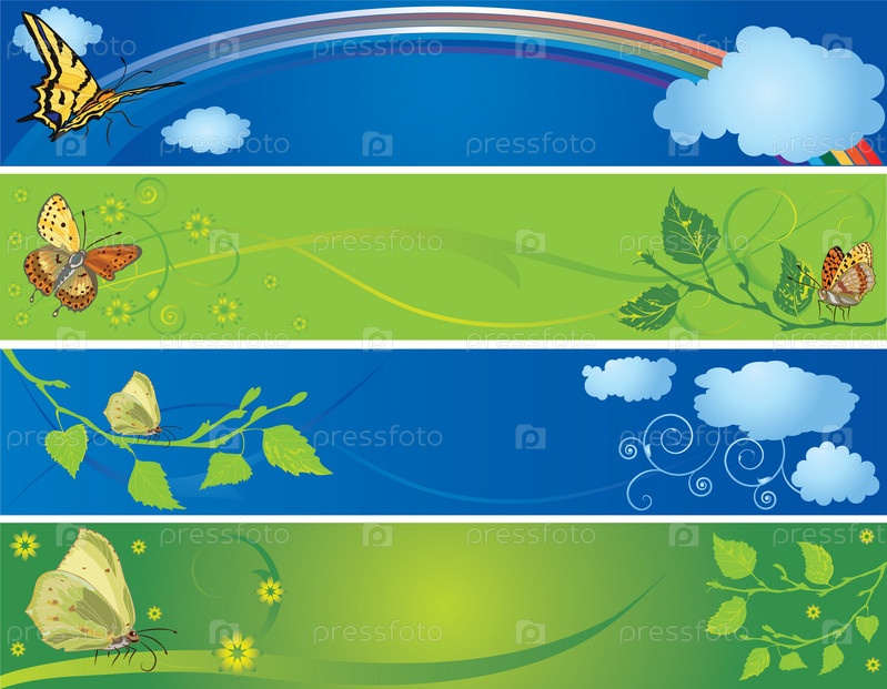 Изображение радуги, бабочек и облаков