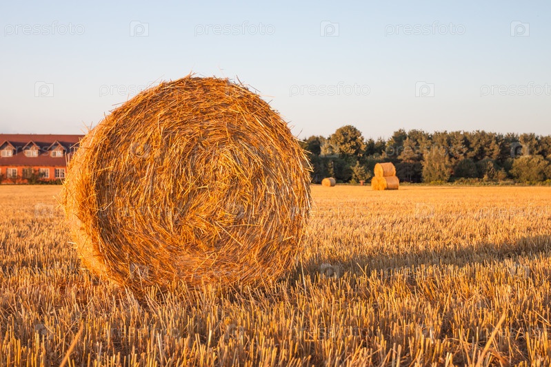 Круглый тюк соломы на лугу