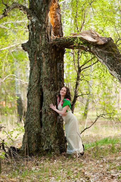 Красивая женщина возле березы