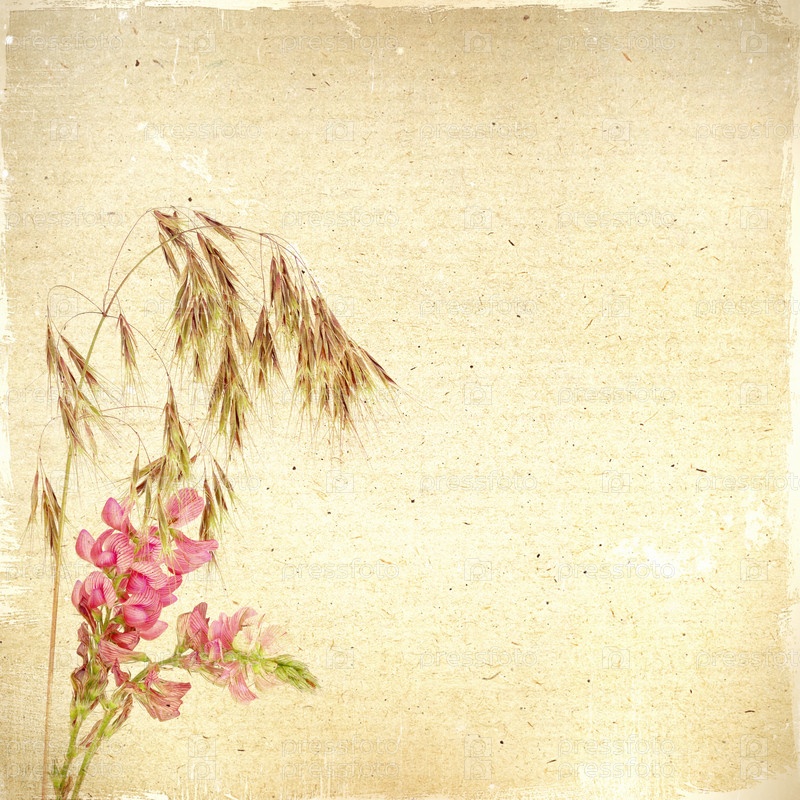 Фон с травой и цветами на коричневой старой бумаге для любого вашего проекта