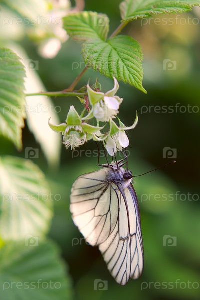 Бабочка на цветке малины