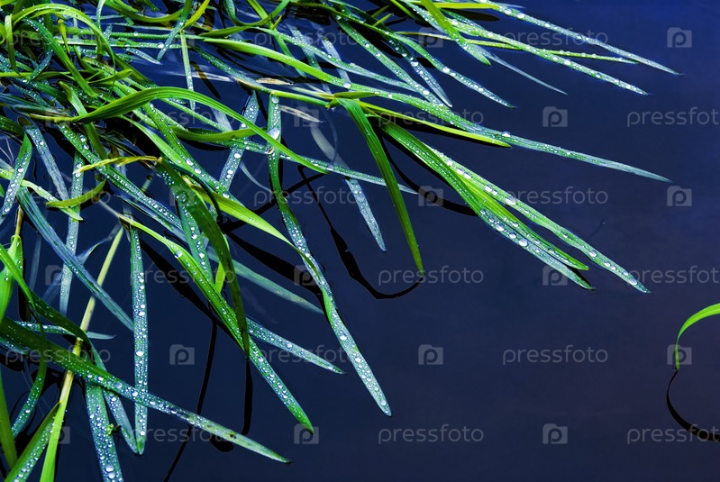 Зеленая трава на гладкой поверхности воды