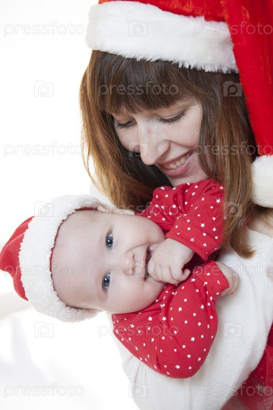 Мать и ребенок празднуют Рождество