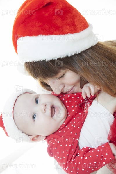 Мать и ребенок празднуют Рождество