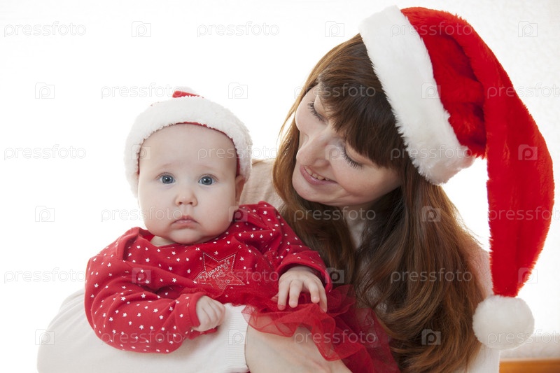 Мать и ребенок празднуют Рождество
