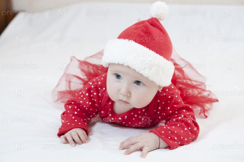 Милая девочка в новогоднем колпаке