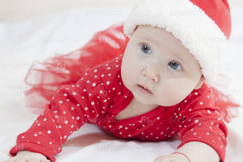 Милая девочка в новогоднем колпаке