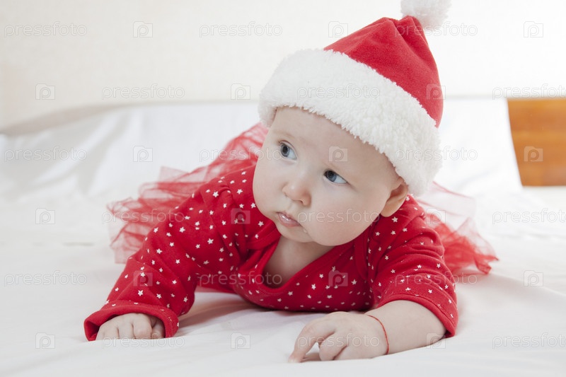 Милая девочка в новогоднем колпаке