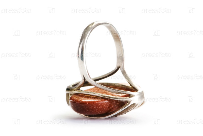 Кольцо с коричневым камнем, изолированное на белом фоне