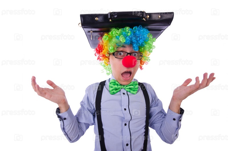 Клоун-бизнесмен, изолированный на белом